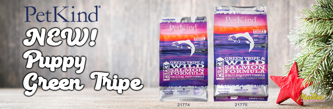 Superfood green tripe + real red meat - grain-free, supports growth, coat & digestion.