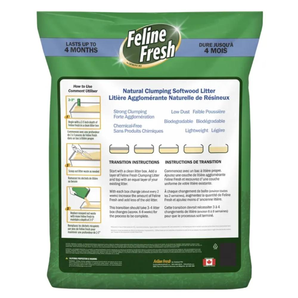 Scoopable Feline Fresh® will absorb the moisture, neutralize the odor and form a firm clump that can easily be scooped out. The product is lightweight, has a higher yield than traditional clumping cat litter and the biodegradable clumps can be safely flushed down the toilet. Like the original Feline Fresh® pine pellet cat litter, they both leave the litter box clean, with a fresh scent. Feline Fresh® is free of silica dust, non-toxic and completely safe for all pets and people, even if ingested.