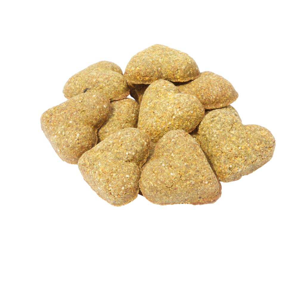 Chicken, Yellow Peas, Dried Potatoes, Dried Sweet Potatoes, Chicken Fat (preserved with mixed tocopherols), Cane Molasses, Alfalfa, Organic Carrots, Organic Apples, Cranberries, Blueberries, Peppermint Extract, Parsley Flakes, Rosemary Extract