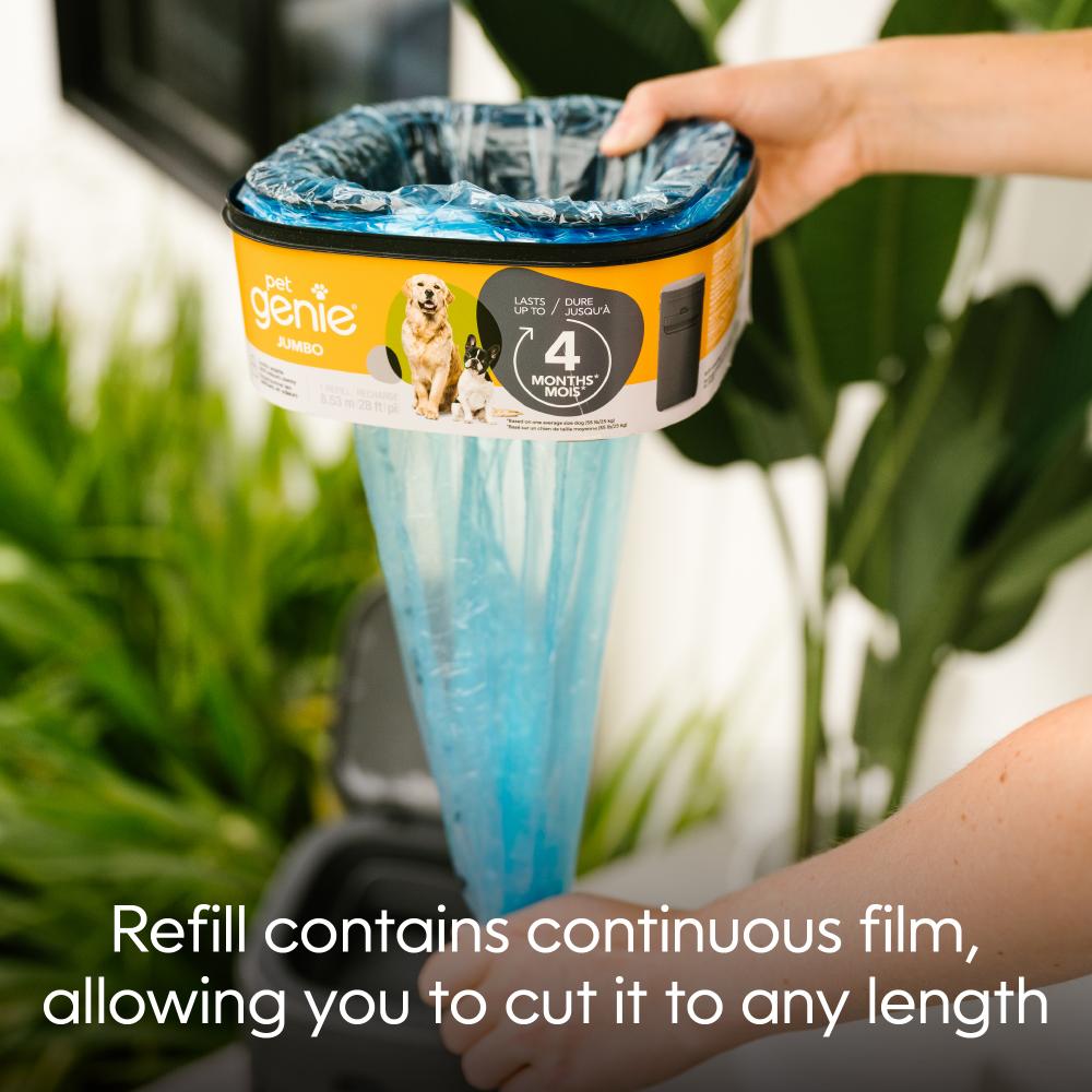 The Pet Genie Jumbo Refill offers 28 feet of refill film that can last up to 4 months for one medium dog, so you won’t have to constantly worry about buying and changing refills. Made with a multi-layer refill that blocks odours and keeps your home fresh and clean. Cleaning your dog waste has never been so fast and easy.