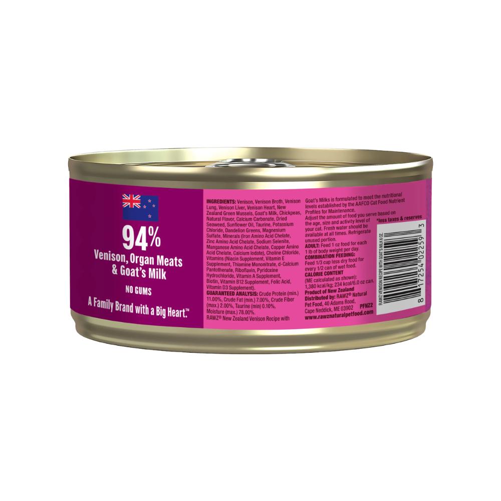 Venison, Venison Broth, Venison Lung, Venison Liver, Venison Heart, New Zealand Green Mussels, Goat’s Milk, Chickpeas, Natural Flavor, Calcium Carbonate, Dried Seaweed, Sunflower Oil, Taurine, Potassium Chloride, Dandelion Greens, Magnesium Sulfate, Minerals (Iron Amino Acid Chelate, Zinc Amino Acid Chelate, Sodium Selenite, Manganese Amino Acid Chelate, Copper Amino Acid Chelate, Calcium Iodate), Choline Chloride, Vitamins (Niacin Supplement, Vitamin E Supplement, Thiamine Mononitrate, d-Calcium Pantothenate, Riboflavin, Pyridoxine Hydrochloride, Vitamin A Supplement, Biotin, Vitamin B12 Supplement, Folic Acid, Vitamin D3 Supplement).