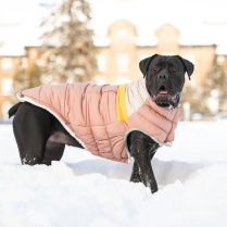 The camp life-inspired colorblock puffer for wanderlust-ready dogs