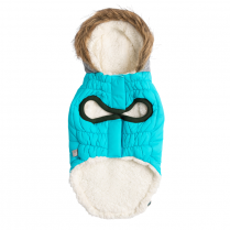 The GF Pet® Winter Sailor Dog Parka is the full package. With fresh colors and a tackable vegan fur-trimmed fleece hood, this dog parka is the ultimate fashion statement with every bit of warmth and comfort you have come to expect from GF Pet®. Enjoy deep faux pockets with our signature contrast pocket tabs and hood-tabs. Turn heads at playtime or while strutting the streets, and stay warm and comfy in our luxurious popcorn Sherpa fleece lining! Water repellent and super-adjustable, with patented Elasto-fit® technology! Designed for dogs who want it all!